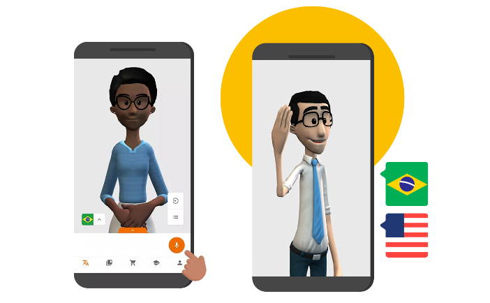 Premiado pela ONU como o melhor app social do mundo, o Hand Talk é um tradutor de texto e voz para Libras (Língua Brasileira de Sinais) e ASL (Língua Americana de Sinais). Com os avatares 3D Hugo e Maya, ele facilita o aprendizado e a comunicação em Libras com traduções instantâneas e dicionário por categorias como alimentos, sentimentos e esportes.