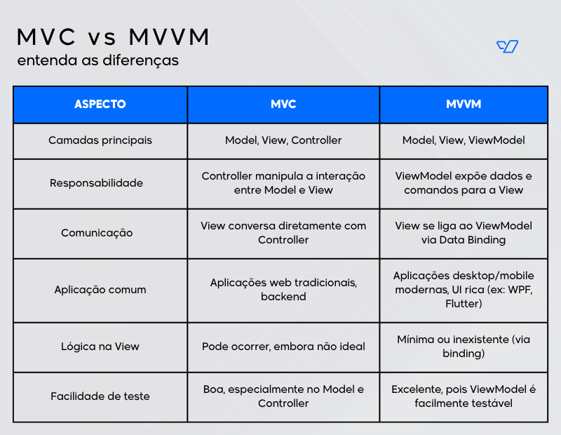 Para ilustrar melhor essa diferença, criamos uma imagem comparativa entre MVC e MVVM confira abaixo!